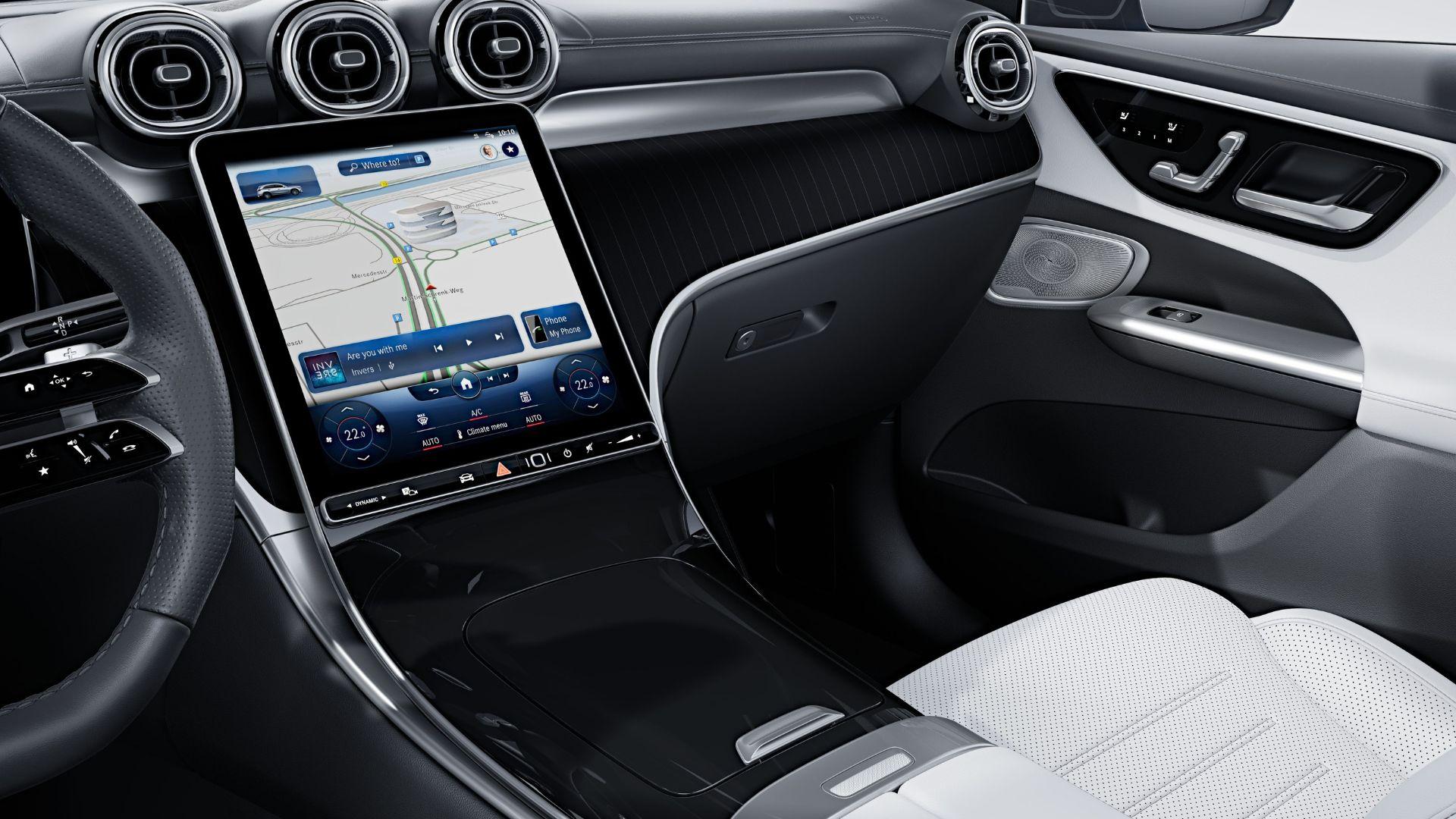 Tilted towards the driver and operated by touch input. It is the digital interface between you and the vehicle, through which you control many important functions of the vehicle. As intuitive and comfortable as possible.